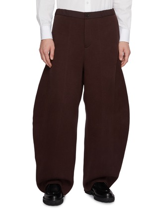 Grounded in sacai’s hybrid tailoring ethos, these pants soften classic menswear codes with a sculptural curved leg and a tactile cotton-cashmere blend. The fluid volume lends ease to sharp shirting or layered outerwear, balancing comfort with composure.