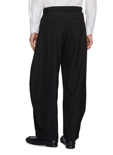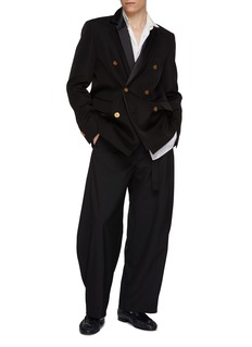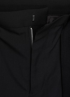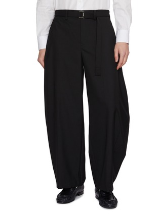 Tailored with sacai’s signature subversion, these pants balance suiting precision with fluid movement. Soft pleats and a curved leg create volume without weight, while the integrated belt sharpens the silhouette—ideal for redefining formal dressing with a directional edge.