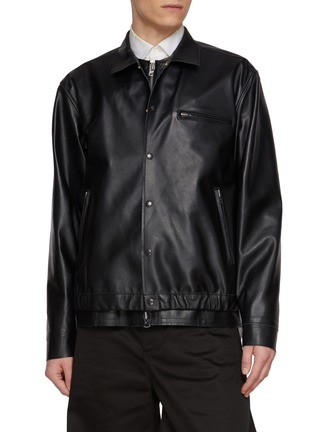 sacai 善于打破常规,制造惊喜,将各种材质、色彩、廓形巧妙糅合,颠覆传统时装美学。这款夹克以亮泽皮革结合层叠下摆,赋予经典衬衫式版型全新演绎,带来时尚张力。