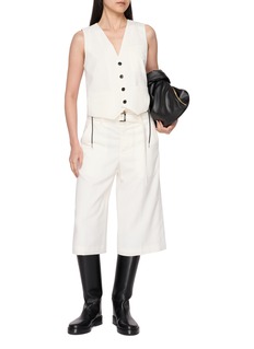 sacai 善于打破常规,制造惊喜,将各种材质、色彩、廓形巧妙糅合,颠覆传统时装美学。这款马甲采用微透面料作后背拼接,勾勒都市感性与复杂调性。