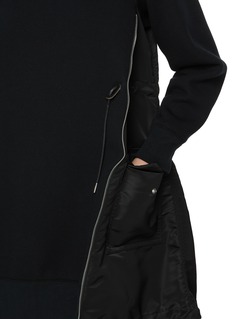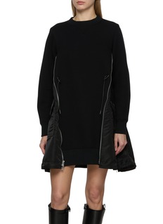 The Sacai hybrid dress redefines contemporary style by blending structure and fluidity. Combining a classic sweatshirt silhouette with contrasting side panels and exposed zips, it offers a bold, architectural silhouette. This innovative design delivers both sophistication and edge, making it a standout piece for modern wardrobes.
