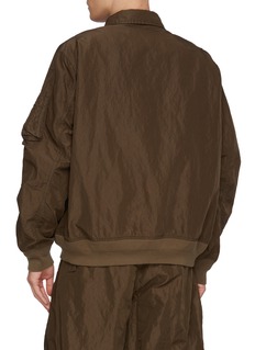 Rendered in a muted earth tone, this bomber jacket highlights sacai’s material experimentation through a softly crinkled nylon finish. The clean zip front and streamlined silhouette balance utility with restraint, making it an effortless outer layer for transitional, everyday styling.