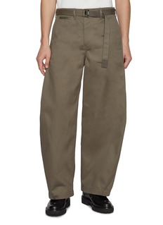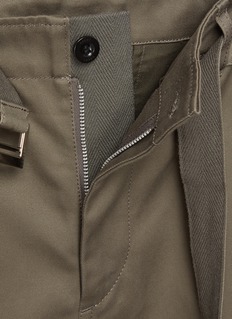 These sacai pants design redefines utilitarian style with its oversized, baggy silhouette and adjustable belted waist, blending functional details with avant-garde comfort. The earthy olive tone and relaxed fit create a bold, contemporary statement for modern wardrobes.