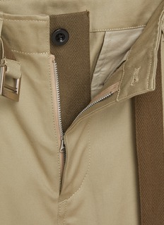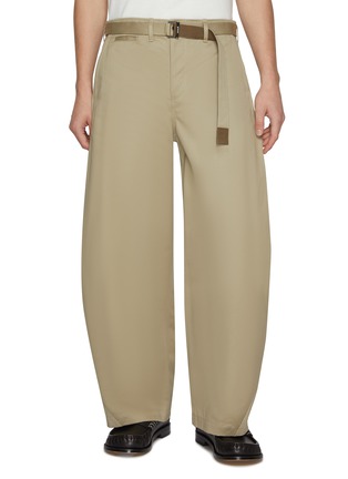 These sacai pants design redefines utilitarian style with its oversized, baggy silhouette and adjustable belted waist, blending functional details with avant-garde comfort. The earthy beige tone and relaxed fit create a bold, contemporary statement for modern wardrobes.