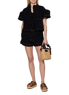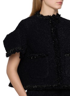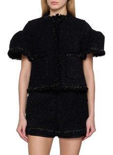Embrace avant-garde elegance with this sacai jacket, where bold textures and intricate detailing create a captivating visual contrast. The unique, voluminous sleeves and frayed edges add a touch of drama, making it a standout piece for the fashion-forward. Perfect for those who dare to redefine contemporary style with a fearless, artistic flair.
