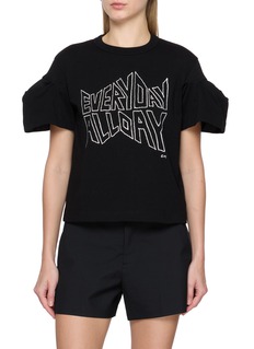 Explore the juxtaposition of textures and the playfulness of unexpected proportions with this T-shirt from sacai. Featuring sculptural sleeves, this asymmetrical piece lends a subtle subversion to your daily edits.