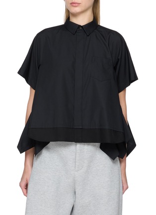 Step into contemporary style with sacai's shirt, exuding the brand's modern flair. This piece features a unique design with an asymmetrical hem, offering both comfort and style. The modern silhouette makes it a versatile addition to any wardrobe.