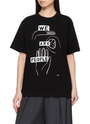 sacai 善于将各种材质、色彩、廓形巧妙糅合,以独特风格颠覆传统时装美学。这款 T 恤采用柔软纯棉材质,饰有印花,将加拿大插画师 Geoff McFetridge 的日常幽默风格融入其中。