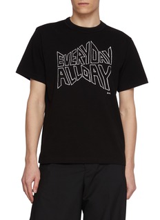 sacai 善于打破常规,制造惊喜,将各种材质、色彩、廓形巧妙糅合,颠覆传统时装美学。这款 T 恤以简洁廓形结合独特印花,展现休闲与个性并存的风格。