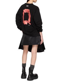 sacai 善于将各种材质、色彩、廓形巧妙糅合,以独特风格颠覆传统时装美学。这款 T 恤采用柔软纯棉材质,饰有印花,将加拿大插画师 Geoff McFetridge 的日常幽默风格融入其中。
