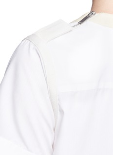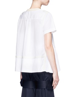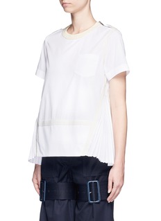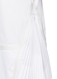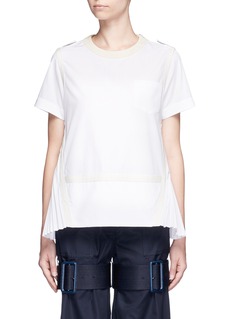 出色的拼接设计令sacai成为时尚界炙手可热的品牌。这款上衣以白色作主调,两侧打造成百褶款式,呈A字形的衣摆有助修饰腰部线条,拼接同色纯棉布条边饰,为单色设计注入亮眼细节,让您轻松塑造简约摩登的都市形象。