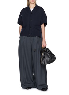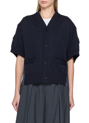 sacai 善于打破常规,制造惊喜,将各种材质、色彩、廓形巧妙糅合,颠覆传统时装美学。这款针织开衫采用牛仔面料拼接,带来都市日常中的线条与质感层次。