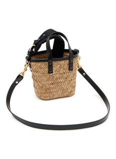 This Hybrid Marche Micro Crossbody Bag merges urban functionality with bold contrast, pairing a woven base with sleek black accents. The adjustable chain strap and gold-toned hardware add a touch of luxury, while the compact size and structured shape make it ideal for effortless, everyday style.