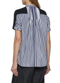 This top from sacai features a distinctive hybrid construction, offering a modern flair filled with the brand's design philosophy. The piece is designed a classic T-shirt front and a smocked back in contrasting stripes, a true fashion statement piece for casual to smart casual outfits.