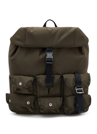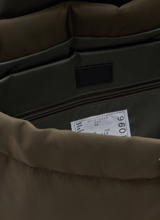 This sacai backpack blends utilitarian design with avant-garde style, featuring multiple pockets and adjustable straps for versatile functionality. The olive green fabric and bold hardware create a striking contrast, embodying the brand’s signature fusion of innovation and everyday practicality. A statement piece for modern, dynamic living.