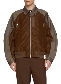 sacai 善于打破常规,制造惊喜,将各种材质、色彩、廓形巧妙糅合,颠覆传统时装美学。这款夹克以拼色设计焕新视觉层次,挺括版型勾勒利落廓形,展现摩登格调。