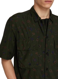 A softly structured floral shirt that balances utility and refinement. Rendered in a muted tonal palette, this sacai design layers workwear-inspired pockets with fluid drape, ideal for relaxed tailoring or elevated off-duty styling.