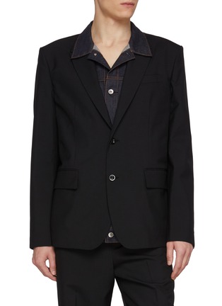 sacai 善于打破常规,制造惊喜,将各种材质、色彩、廓形巧妙糅合,颠覆传统时装美学。这款西服外套以拼接牛仔细节为经典西装廓形注入街头元素,展现摩登与休闲的巧妙融合。