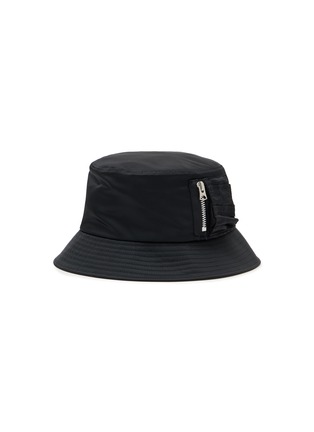 Step into the world of refined practicality with this SACAI bucket hat, an essential for the discerning urban explorer. Crafted from a sleek black fabric, this hat not only offers protection from the elements but also serves as a stylish accessory with its unique design features. A standout detail is the functional zippered pocket, perfect for storing small essentials on the go.