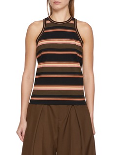 sacai 善于打破常规,制造惊喜,将各种材质、色彩、廓形巧妙糅合,颠覆传统时装美学。这款背心采用多色条纹设计,可轻松融入你的基础款衣橱,以质感和色彩点亮你的日常出街造型。