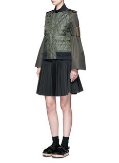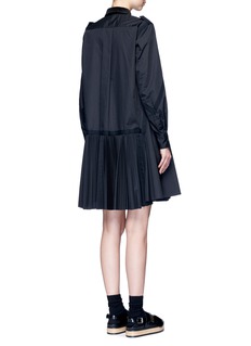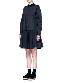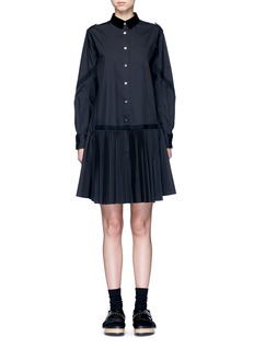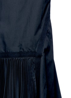 出色的拼接设计令sacai成为时尚界炙手可热的品牌。这款连衣裙采用纯黑色设计,缀以布条边饰及百褶裙摆等特色细节,令单色造型不再单调沉闷,让您轻松塑造简约摩登的都市形象。