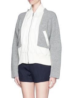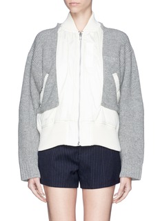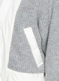 特立独行的sacai以棒球外套款式为基础,光泽柔软的表面拼接优质羊毛针织面料,罗纹款式突出抢眼却又不会过份浮夸,粗糙表面为设计带来变化,极具质感纹理,为秋冬添上暖意。