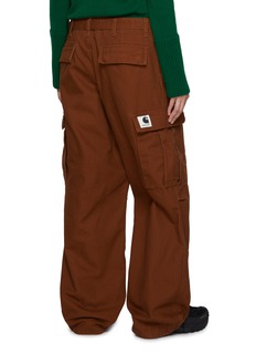 为了创造出扎根于实用主义服装的风格,sacai 与 Carhartt WIP 合作,将其耐磨、实用的风格和面料与 sacai 独特的设计语言相结合,重新解构工装元素。这款长裤以挺阔面料勾勒经典直筒裤型,搭配口袋与金属扣腰带细节,为经典工装格调注入复古气质。