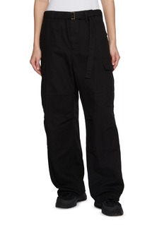 sacai's collaboration with Carhartt WIP redefines utilitarian style, merging the rugged functionality of Carhartt's iconic duck fabric jackets with sacai’s innovative design elements. This pair is cut into a relaxed fit with a belted waist for enhanced utility on the classic cargo style.