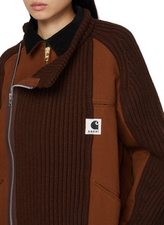 为了创造出扎根于实用主义服装的风格,sacai 与 Carhartt WIP 合作,将其耐磨、实用的风格和面料与 sacai 独特的设计语言相结合,重新解构工装元素。这款上衣以标志性面料拼接糅合柔软和硬挺的质感,搭配侧拉链与金属细节,为经典工装格调注入俏皮气质。