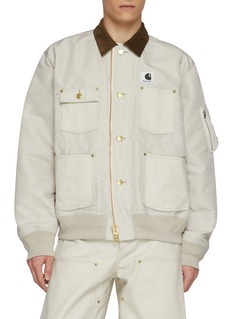 为了创造出扎根于实用主义服装的风格,sacai 与 Carhartt WIP 合作,将其耐磨、实用的风格和面料与 sacai 独特的设计语言相结合,重新解构工装元素。这款夹克以质感面料勾勒经典翻领廓形,搭配口袋与金属扣细节,为经典工装格调注入复古气质。