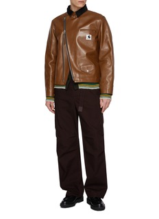sacai's collaboration with Carhartt WIP redefines utilitarian style, merging the rugged functionality of Carhartt's iconic duck fabric jackets with sacai’s innovative design elements. The collection offers a fresh perspective on classic silhouettes, making it a must-have for those who value both durability and design.