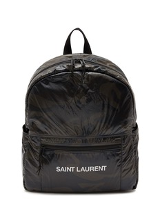 SAINT LAURENT presents this Nuxx backpack, featuring a camouflage print veneer with a contrasting logo lettering on the front for a branded flair. Equipped with a roomy interior to house all your daily essentials, this carryall makes for the perfect addition to your streetwear edits.
