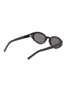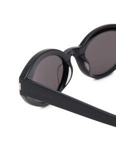 Step into the understated elegance of Saint Laurent with these minimalist round-frame sunglasses. Crafted in sleek black acetate, these sunglasses offer a modern twist on a classic design, featuring subtle silver accents at the hinges and the iconic Saint Laurent logo at the temples. Perfect for those who favor chic, streamlined accessories, these sunglasses not only provide excellent UV protection but also enhance any outfit with a touch of refined sophistication. Ideal for daily wear or special occasions, they are a timeless piece in any fashion connoisseur's collection.