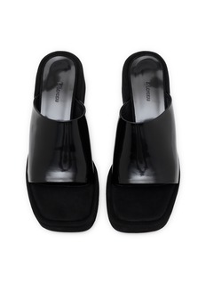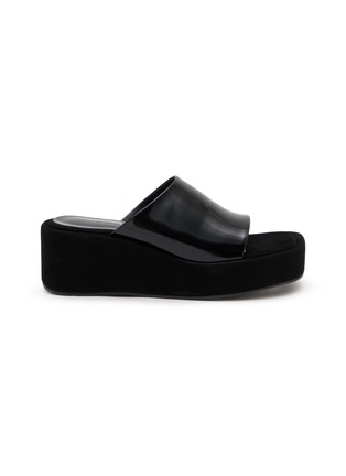 Salondeju elevates minimalist design with these statement platform slide sandals, featuring an exaggerated wedge sole and sleek wide strap upper. The sculptural silhouette with substantial height and smooth lines delivers bold contemporary style, while the slip-on construction ensures effortless sophistication for modern wardrobes.