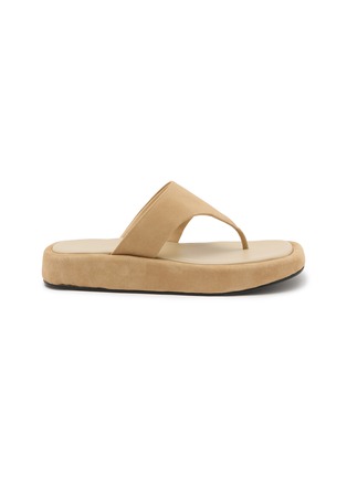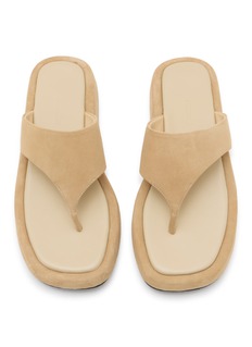 Salondeju presents these refined platform thong sandals with tonal monochromatic design and sculpted cushioned sole. The minimalist silhouette features a wide crossover strap and sleek toe post for streamlined elegance, while the substantial base delivers elevated comfort and contemporary sophistication for effortless warm-weather styling.