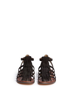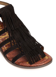 Sam Edelman这款凉鞋采用多重搭带麂皮设计,有助修饰脚部线条,中央的流苏装饰俏皮活泼,与低调百搭的黑色相平衡,不妨配搭及踝长度的裙子,塑造个性时尚风格。
