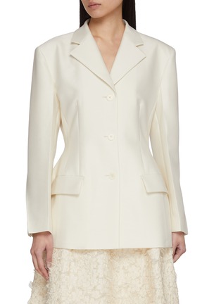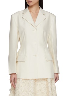 SANDBEIGE 结合现代极简主义与经典优雅的设计理念,强调简洁、知性的美学,灵感来源广泛,从历史上的著名设计师到自然界的奇妙色彩。这款西装用缎面材质强化柔美感,收腰廓形平衡利落与女性化,既可以打造优雅约会造型,也能混搭出轻熟通勤风,是兼具质感与造型感的单品。