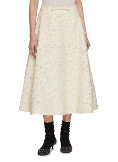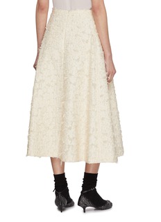 SANDBEIGE 结合现代极简主义与经典优雅的设计理念,强调简洁、知性的美学,灵感来源广泛,从历史上的著名设计师到自然界的奇妙色彩。这款半裙用毛绒肌理强化柔暖氛围,伞摆廓形兼顾灵动与优雅,是衣橱里兼具质感与实穿的温柔单品。