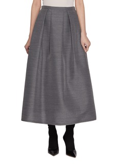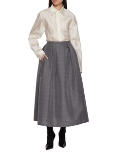 SANDBEIGE 结合现代极简主义与经典优雅的设计理念,强调简洁、知性的美学,灵感来源广泛,从历史上的著名设计师到自然界的奇妙色彩。这款半裙用挺括材质强化廓形感,大摆设计平衡利落与柔美,灰调色调适配多风格,是衣橱里兼具造型感与实穿性的基础单品。
