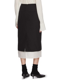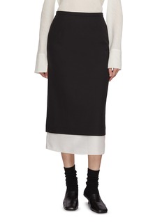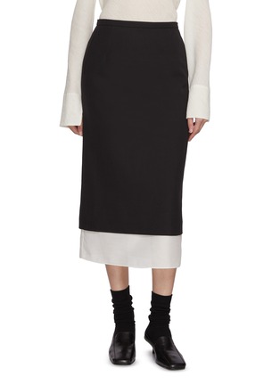 SANDBEIGE 结合现代极简主义与经典优雅的设计理念,强调简洁、知性的美学,灵感来源广泛,从历史上的著名设计师到自然界的奇妙色彩。这款半身裙采用撞色拼接剪裁打破日常,既可以打造正式职场造型,也能混搭出休闲轻熟风。