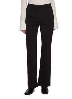 SANDBEIGE 结合现代极简主义与经典优雅的设计理念,强调简洁、知性的美学,灵感来源广泛,从历史上的著名设计师到自然界的奇妙色彩。这款长裤采用喇叭裤型剪裁,黑色调适配全场景风格,既可以打造正式职场造型,也能混搭出休闲轻熟风。