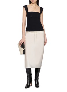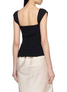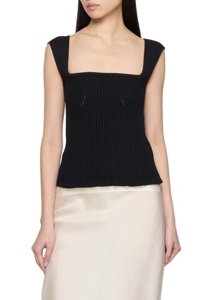 SANDBEIGE 结合现代极简主义与经典优雅的设计理念,强调简洁、知性的美学。这款上衣采用质感针织面料勾勒复古廓形,方领搭配阔肩的设计修饰身线,丝滑融入你的日常气质衣橱。