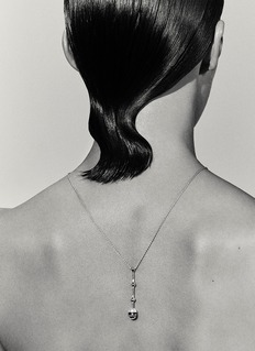 This 18K gold drop necklace features signature links and ends with sliding moonstone and smoky quartz stones. The lower gold dome is accented by a border of pavé-set diamonds, this design is where aesthetics meet engineering.