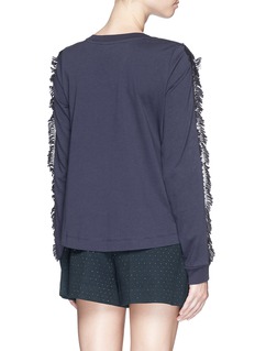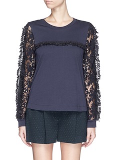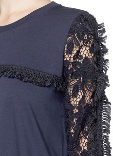 Feminine folklore comes to light in this cotton jersey tee from See By Chloé. Finished with a ribbed crew neck and cuffs for a relaxed appeal, this one harnesses traditional craftsmanship with rope tassel trims. Setting itself apart from the others with guipure lace panelled sleeves, this one is a textured delight of sorts that will land solid grounding in your basics wardrobe with a twist.