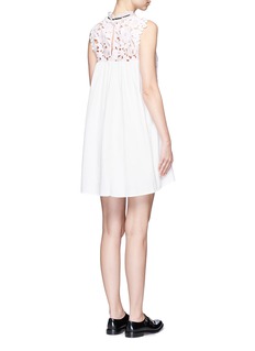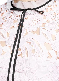 self-portrait这款连衣裙正面以柔嫩淡雅的粉色蕾丝为主调,于肩部和腰部拼贴白色花卉装饰,配以白色薄纱小立领和颈部黑色罗纹长系带,尽显斯文清纯的淑女魅力。背部则拼接略挺括的白色褶裥面料,打造更加充盈立体的轮廓。您不妨搭配一双黑色皮鞋,平衡整体风格,令您优雅又不失率性。