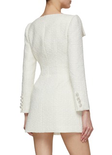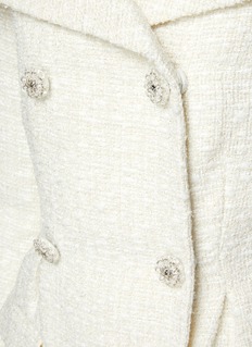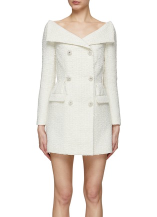 self-portrait 以流畅的廓形和精湛的剪裁技法,打造一系列精致服饰。这款连衣裙采用质感丰富的粗花呢面料打造出露肩造型,一展你迷人的肩颈线条,纯白色调结合精致珠饰钮扣,随时随刻散发优雅魅力。