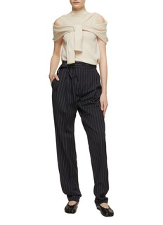 Setchu 意为 “和洋折衷”,设计师致力于将不同文化的融合,极简主义融入精心剪裁,不断衍生出新的服饰形态。这款西装外套以复古条纹散发出慵懒随性的迷人气息,直筒剪裁,附有腰带。