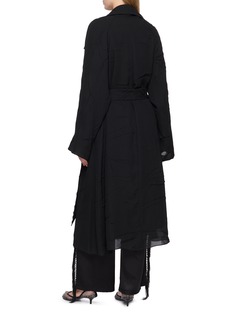 Sharon Wauchob 这款风衣以系带收腰重塑比例,翻领设计保留经典基底,纯黑调适配多风格。搭同系列纱裙显通透氛围,配利落内搭衬层次,是日常与轻社交场合都适配的氛围感单品。