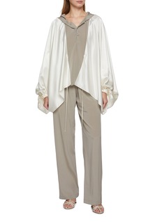 Sharon Wauchob 的作品以对材料和面料的独特实验性使用而著称,融入了褶皱、垂褶和多种精致细节,流露着非传统典雅格调。这款上衣裁自光泽真丝面料,宽松版型勾勒线条同时流露感性魅力。