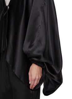 Sharon Wauchob 的作品以对材料和面料的独特实验性使用而著称,融入了褶皱、垂褶和多种精致细节,流露着非传统典雅格调。这款上衣裁自光泽真丝面料,宽松版型勾勒线条同时流露感性魅力。